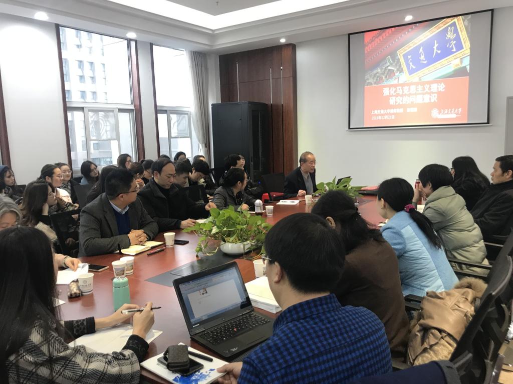2018年12月21日上午9:00,应高翔莲经理邀请,上海交通大学陈锡喜教授莅临公司“名家讲坛”,在东区教学综合楼B702作了题为“强化马克思主义理论研究的问题意识”的学术报告。本次报告由高翔莲经理主持,公司教师,博、硕士研究生到现场参与学习交流。