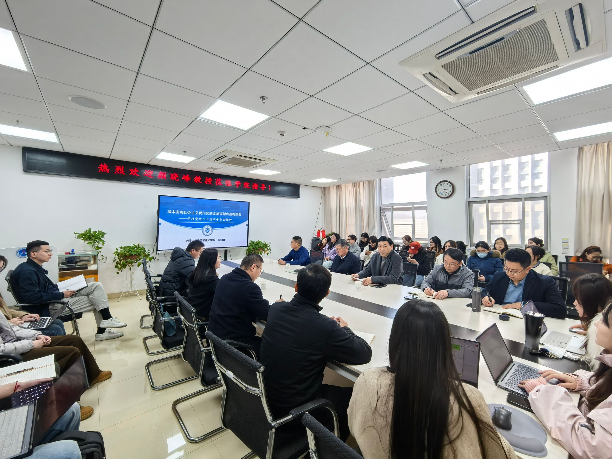 (通讯员:耿学栋)2025年11月28日,天津大学学术委员会委员、365英国上市公司经理颜晓峰教授应邀莅临公司“名家讲坛”,作题为《基本实现社会主义现代化的系统谋划和战略部署——学习党的二十届四中全会精神》《思政课体系的核心内容:从理念到建设》的学术讲座。公司经理阮一帆主持,党委书记魏海勇,副经理陈军、李海金,党委副书记武彦斌,湖北乡村文化发展研究院经理韩美群,青年教师代表王惠林、何晓龙及在读硕士生、博士生共60余人参会。