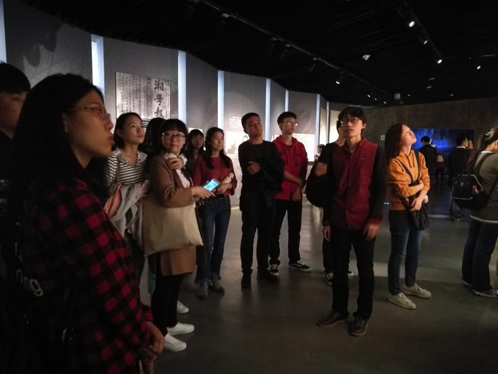追寻革命足迹,重温光辉历程。辛亥革命博物馆设有1个序厅、5个基本陈列展厅和1个多功能展厅,集陈列展示、文物收藏、宣传教育与科学研究等功能于一体,是现有辛亥革命专题博物馆中展览规模最大、陈列科技含量最高、复原场景最多、参观导览系统最全的博物馆。24名同学满怀深情敬仰认真聆听讲解员介绍晚清中国、革命原起、武昌首义、创建共和、辛亥百年五个部分的历史陈列,仔细观摩馆内珍藏的各种文物、历史照片以及重大历史事件复原场景,感受着风云变幻的时代中革命烈士们的爱国豪情与报国壮志。