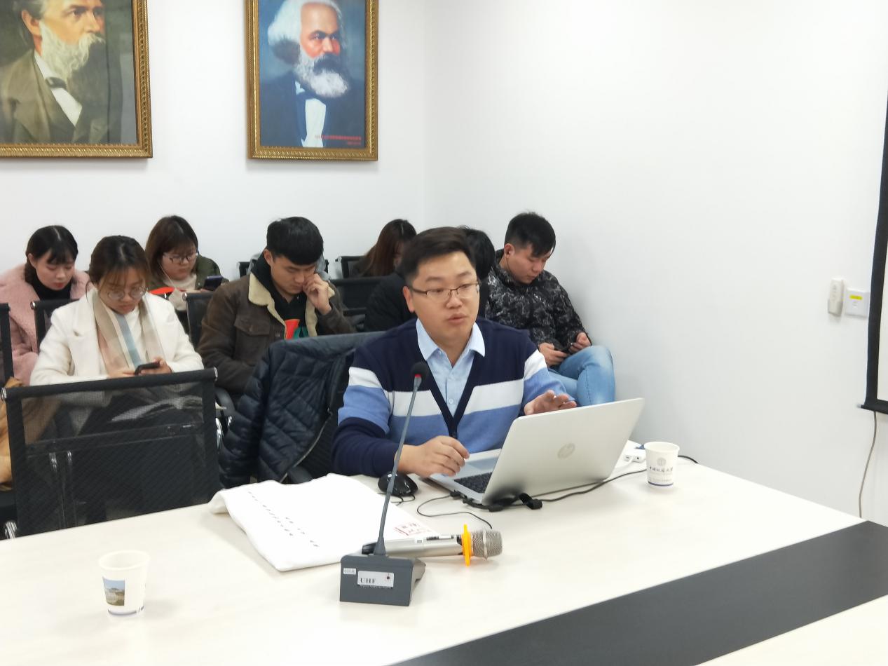 2018年12月20日下午2点,公司“理论之光”研究生学术论坛在东教楼B1013报告厅举行。本期论坛特邀上海交通大学博士研究生孙绍勇作为主讲嘉宾,就如何培养马克思主义专业研究生学术创新能力问题展开学术交流。孙博士以“青年学者提升马克思主义研究能力解锁”为题,从确定正确的研究方向、拓展研究视野、知识积累、撰写和打磨论文,以及投稿细节等方面,介绍了马克思主义研究中的问题和方法。他还基于具体、生动的经验案例,强调了研究选择方向、知识积累的重要性,结合自己的研究和撰稿经历,讲授了马克思主义研究中论文撰写和投稿的注意事项和技巧。公司马克思主义理论专业70余名硕士和博士生研究生到场参加,就学习和研究中的疑问纷纷向孙博士请教学习。