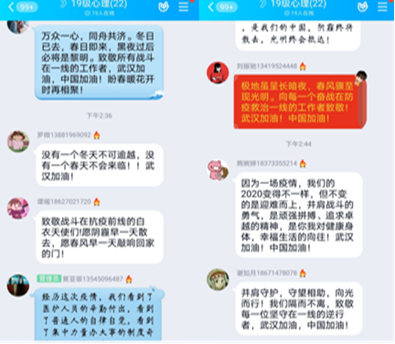 班会的最后,同学们互相表达了思念,并为武汉送上了真挚的祝福。同学们都坚信战胜疫情只是时间问题,胜利就在眼前。