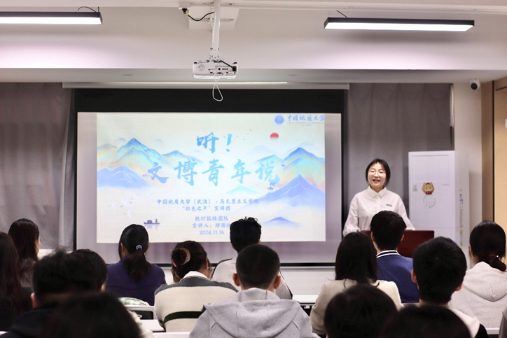 此次宣讲人郑雨欣的宣讲主题为《听!文博青年说》,讲述了文博青年在建设社会主义文化强国,推动文化现代化进程中所做的贡献,同时依托公司“逸夫博物馆+秭归实习基地”大思政课实践教学平台以及“红绿蓝”大中小学思政课一体化共同体建设项目作为案例补充,呼应着习近平总书记在湖北探访云梦博物馆的时政热点。
