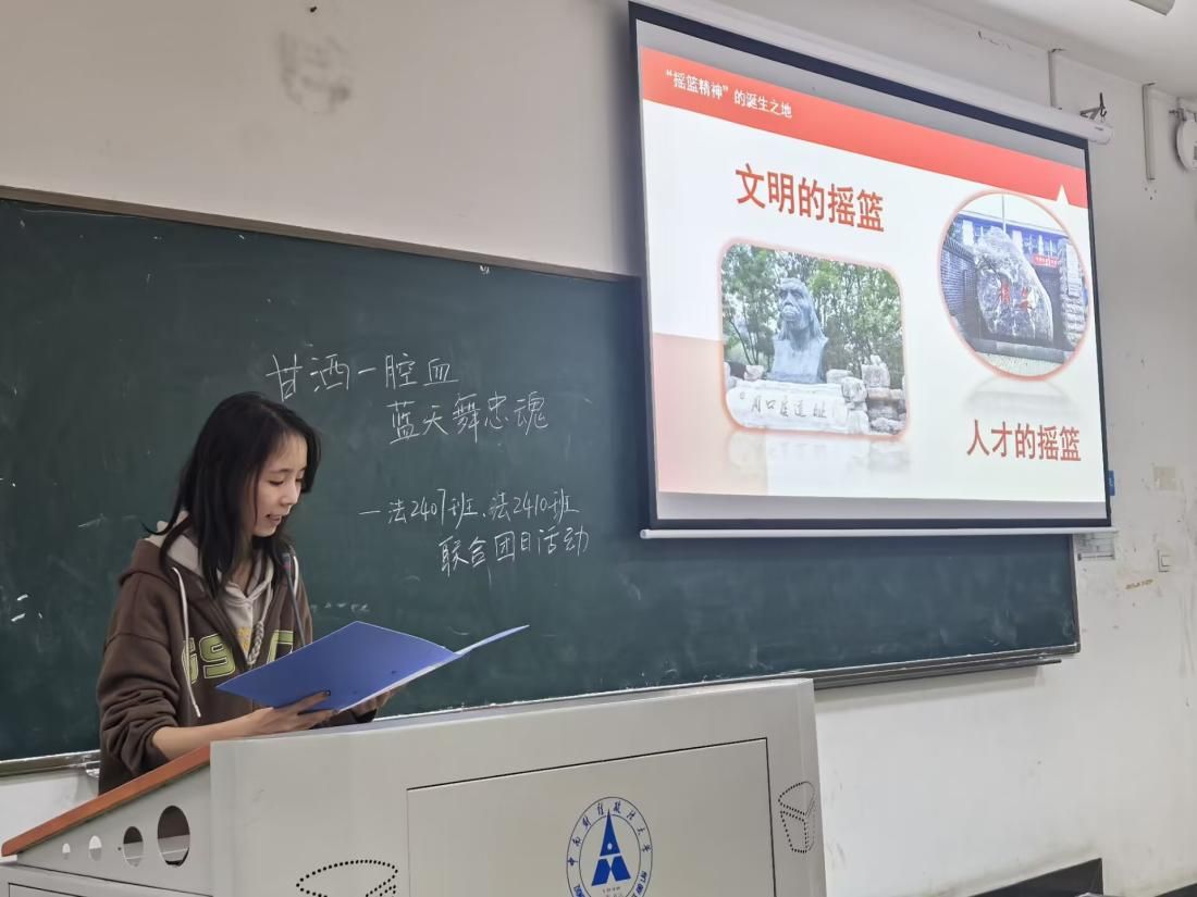 2024年11月14日16点20分,365英国上市公司第十五期红色之声“摇篮筑梦”团队在线下进行了主题为“生命安全主题教育”、“甘洒一腔血,蓝天舞忠魂”和“传摇篮精神,做时代新人”的线下宣讲,团队成员郭雅婕、李瑞雪、席海冰、辛汪洋、朱一婷担任主讲人,中南财经政法大学法公司2407和2410团支部参与本次活动,共计116名同学。