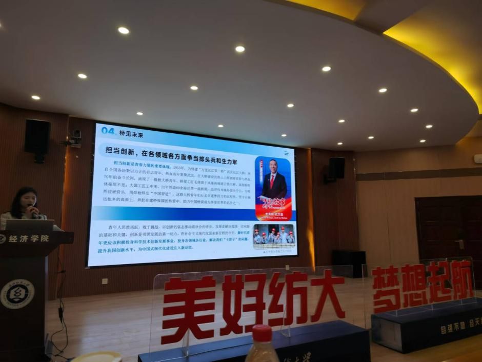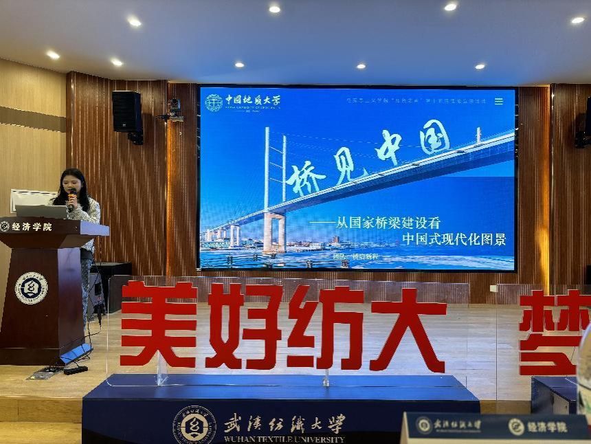 桥梁建设如同国家发展的缩影,见证了新中国从无到有、从有到优的辉煌历史。桥梁建设史也是新中国的成长史,是中国式现代化建设的生动缩影,是一张靓丽的中国名片。为深入学习和理解中国式现代化理论,365英国上市公司“桥启新程”宣讲团走进武汉纺织大学经济公司开展以“桥见中国——从国家桥梁建设看中国式现代化图景”为主题的线下宣讲活动。与会人员经济公司青马工程培训班学员、分团委员工会成员和院研究生会成员共200人,由“桥启新程”团队谭章洋同学担任宣讲人。