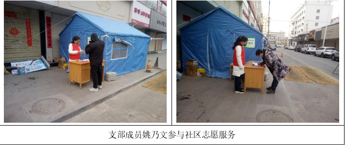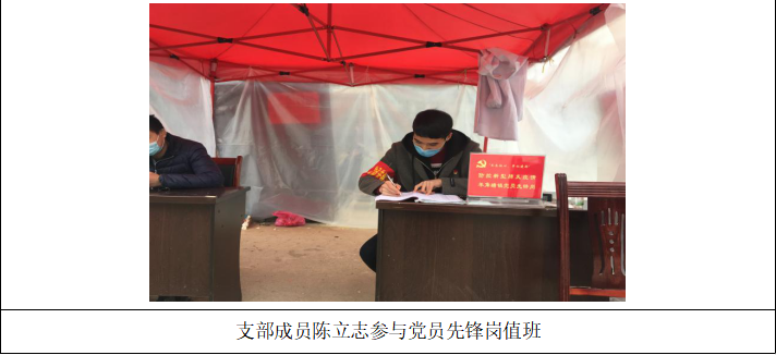 疫情防控期间,支部成员以实际行动践行初心使命,积极投入家乡开展的抗击疫情志愿服务活动。