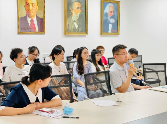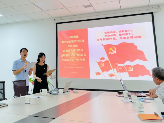 (通讯员:王舒晨、张东凯、李蔚然)奋斗百年路,启航新征程。在庆祝中国共产党成立100周年这个光荣的日子,德育教研部党支部与2020级马克思主义理论硕士生党支部于2021年7月1日下午14:30在东区教学综合楼B1013开展“学党史·铸初心”党史学习交流会暨结对领航支部联合主题党日活动。此次活动共历时三小时,由支部书记李蔚然老师和张东凯同学共同主持,师生党支部全体同志参与了本次交流活动,经理阮一帆为在场党员开展党史学习教育专题辅导。
