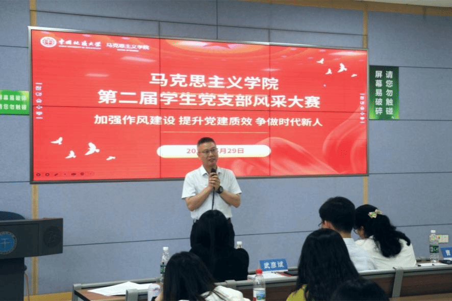 在党务风采展示环节,各支部派代进行抽提作答,题目涵盖如何强化党支部作风建设、提升支部主题党日活动效果、发挥党员先锋模范作用、利用人工智能技术开展组织生活等。考察题目既贴近党员学习和生活,又聚焦党建工作实际,为检验党员党务知识和能力,强化广大党员同学的责任意识,进一步提升其党性修养提供了帮助。