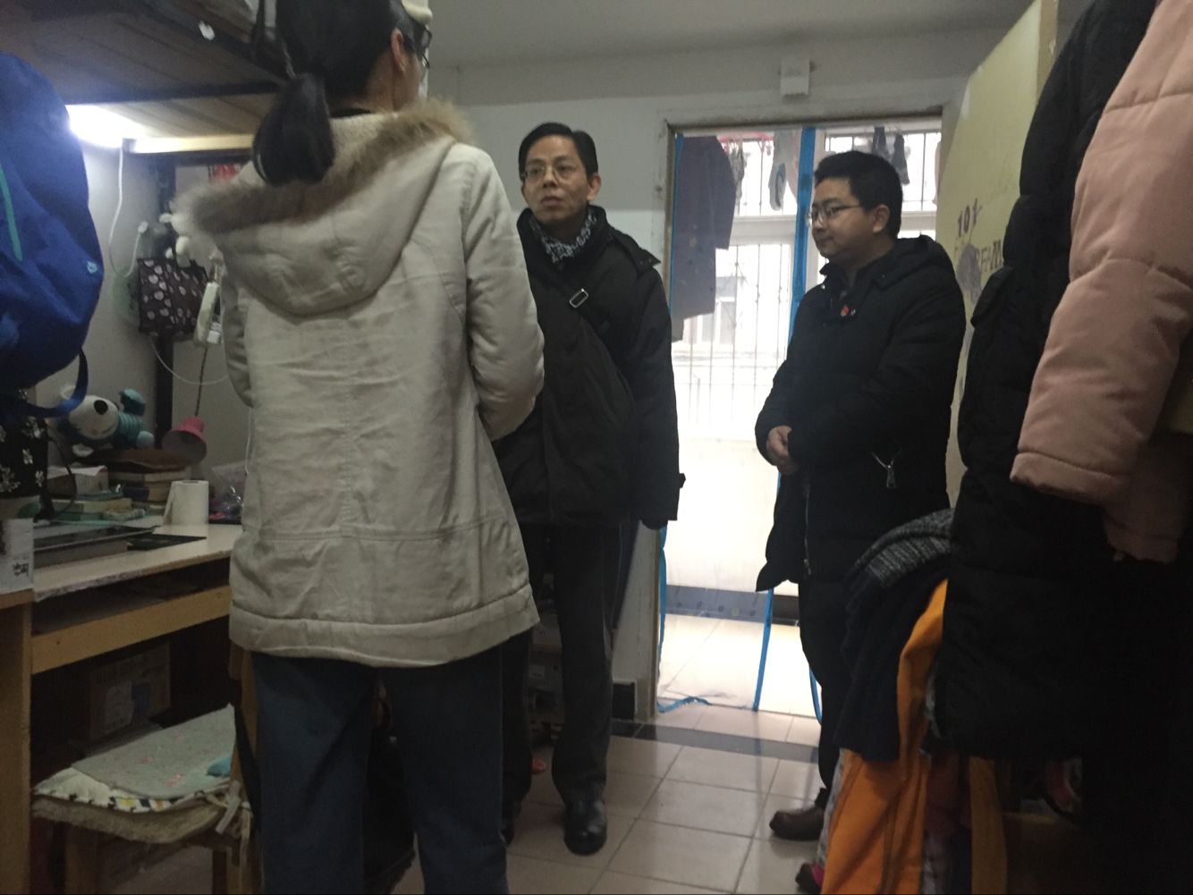 图二:经理高翔莲、副经理张存国检查本科生宿舍,慰问留校本科生