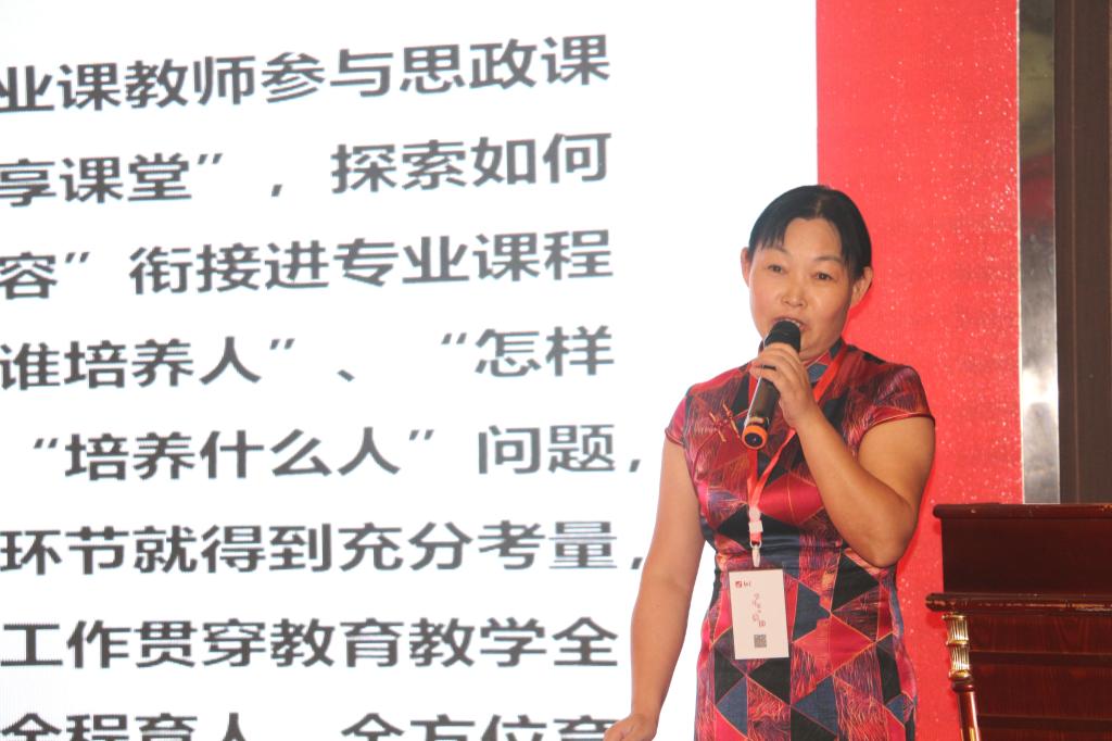湖北水利水电职业技术公司思政部杨艳妮教授在《专业课与思政课如何同向同行》中,从“创享课堂”任务和模式两个方面向与会人员分享了该公司如何让思政课教师和专业课教师同上一门课,初步探索思政课程与课程思政有机融合的经验,充分发挥“思政课程+课程思政”双向驱动的作用。