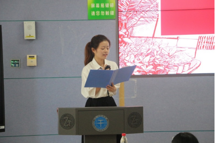 员工会执行主席胡小青同学代表学长学姐发言。她分享了自己老员工活的三少三多:少一点徘徊,多一点探索;少一点放纵,多一点自律;少一点盲从,多一点思考。她向同学们展现了老员工活里会面临的多种情况与良好习惯的重要性。她希望大家能找到自己的节奏,能“恢恢乎其于游刃必有余地矣”。