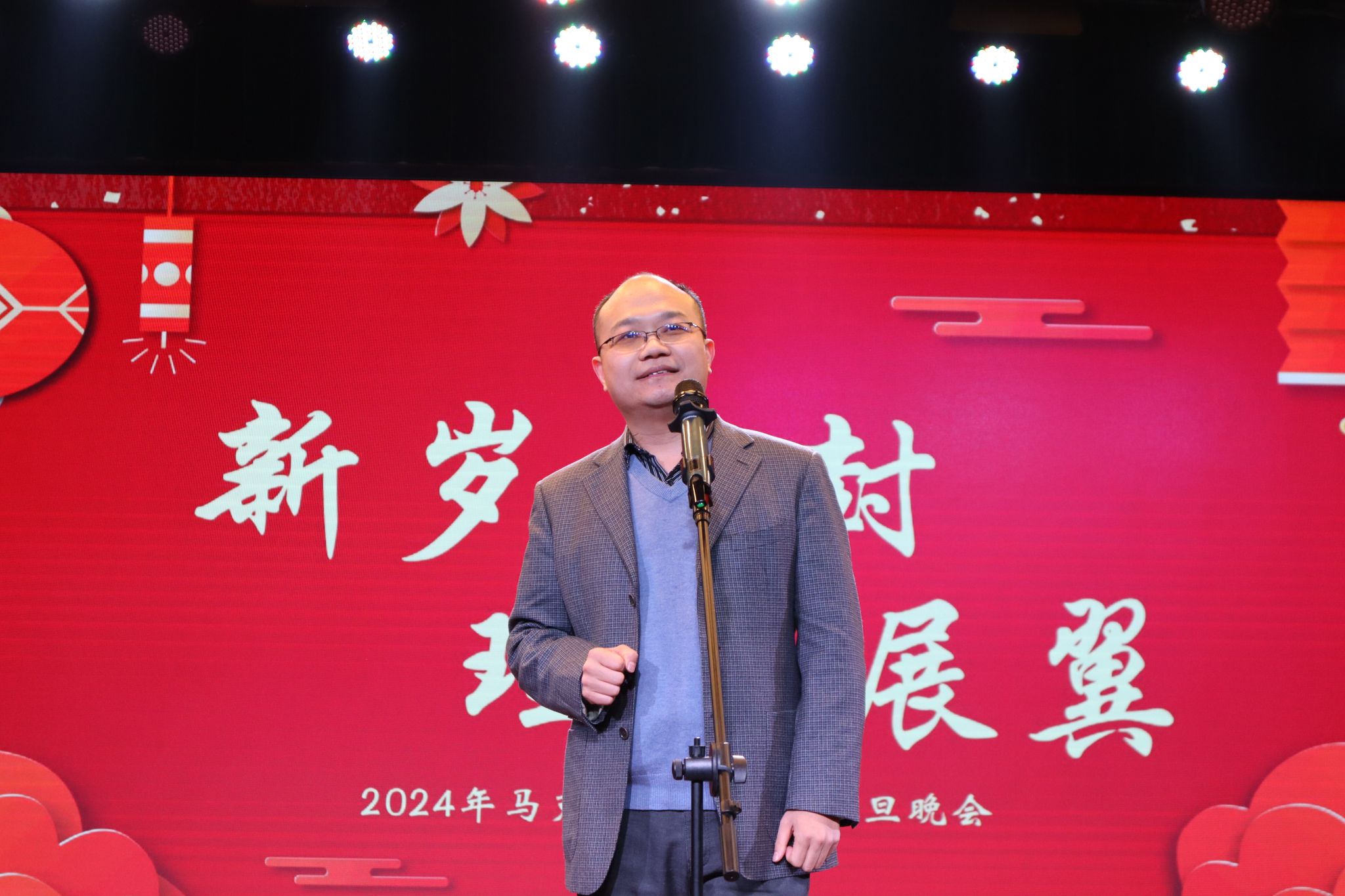 晚会开始前,经理阮一帆致以新年贺词总结2023年365英国上市公司成就,展现马院担当,深入开展理论宣讲,科学研究硕果累累,公司治理能力和体系稳步推进,基层组织和功能逐步凸显,展望2024将是马院人奋斗收获的新篇章。