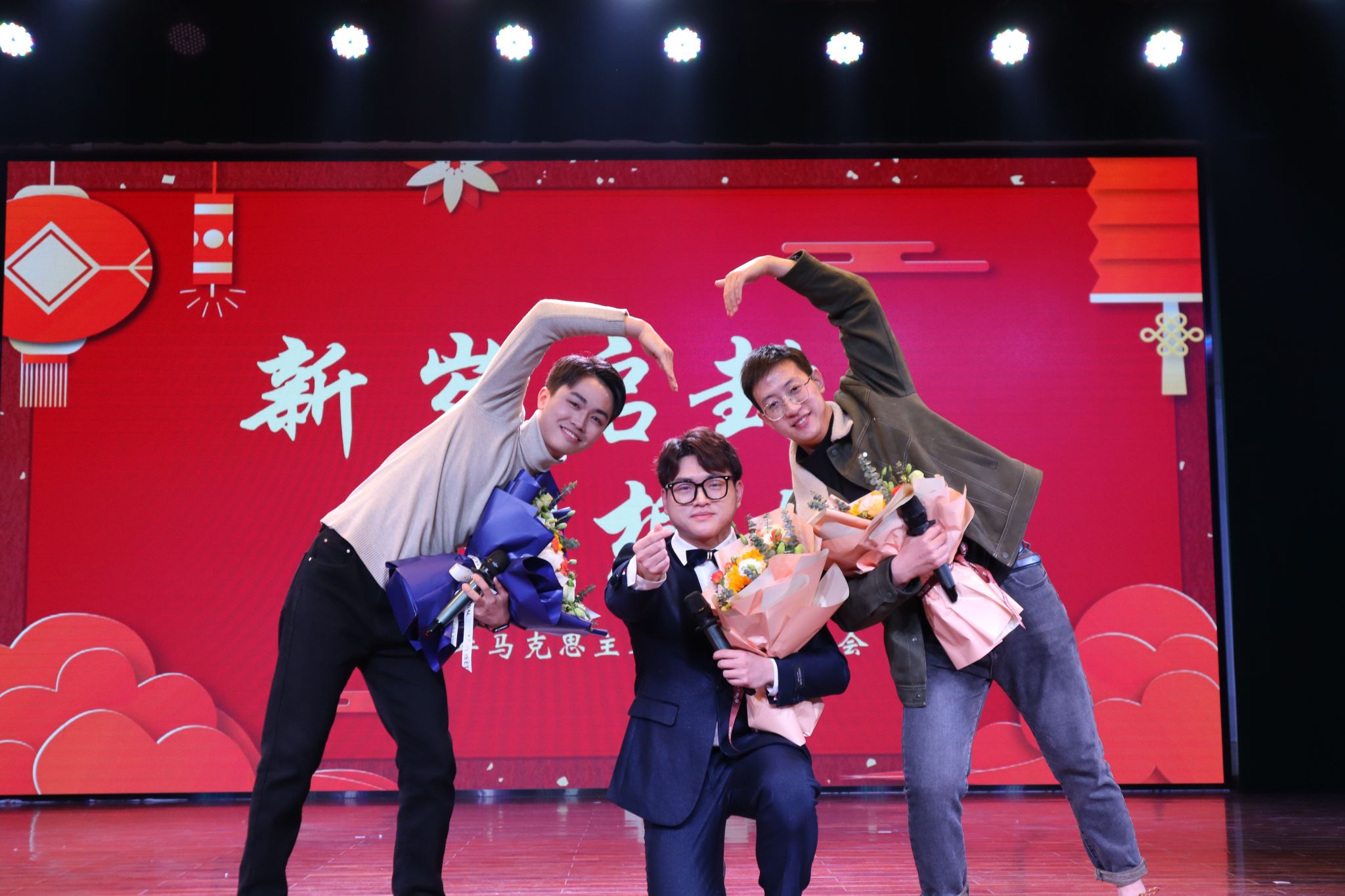 图8:赵晨希、朱鹤灵和谭思懿诗朗诵《马院有点甜》
