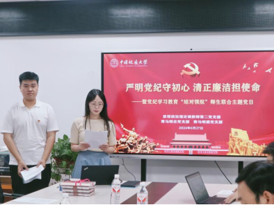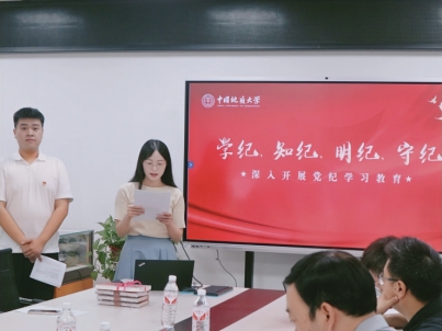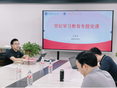 第一项为“学党纪”专题党课学习。学纪是知纪、明纪、守纪的基本前提,马克思主义公司党委书记汪再奇同志为师生党员讲授党纪学习教育专题党课。汪再奇书记表示,习近平总书记关于全面加强党的纪律建设的重要论述为加强新时代党的建设、推进党的自我革命指明了前进方向,为党纪学习教育提供了根本遵循,在全党开展党纪学习教育既是推动全面从严治党的重要举措,也为推进清廉地大建设,实现中华民族伟大复兴提供了坚强的纪律保障。他从为什么学党纪、学什么内容、怎么开展学习三个问题入手,对《中国共产党纪律处分条例》部分重点章节进行了详细解读。
