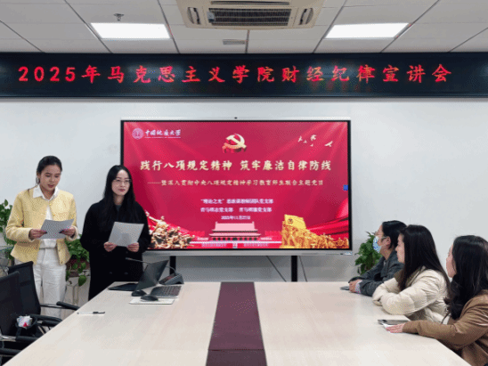 “理论之光”思政课教师团队党支部教师党员代表黄佳琦老师表示,“作为专业课教师,‘务实’是最基本的作风——每节课不搞‘花架子’、认真打磨内容,与员工沟通不摆‘教师架子’、真诚倾听需求,这就是我眼中教师践行八项规定精神的日常。”教师党员代表申慧宁老师认为,“科研工作里,‘廉洁’是学术底线——拒绝数据造假、不蹭无关项目的‘热度’,用扎实的研究成果说话,才是科研工作者的作风底色。”