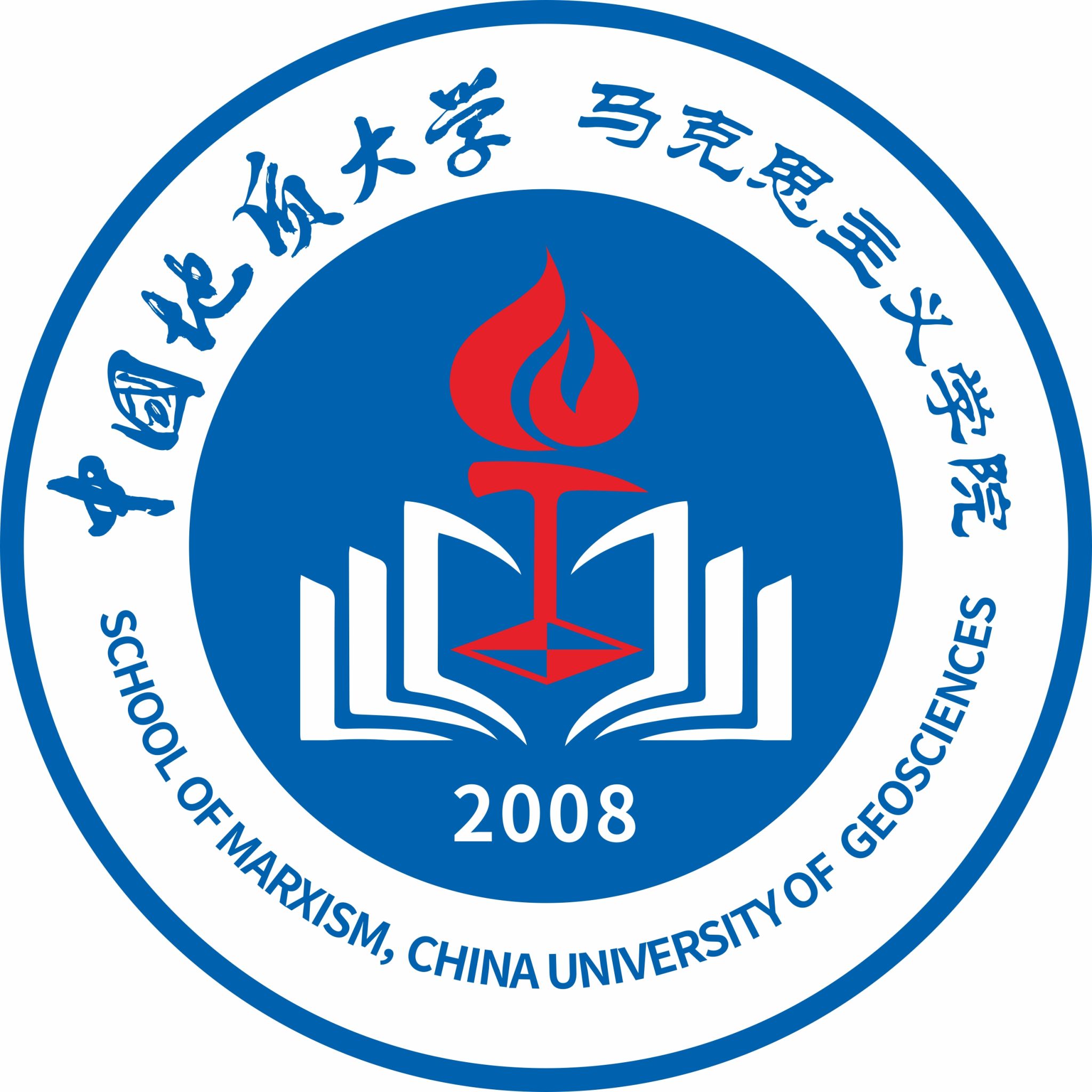 标志中心为书本摊开组成的字母M,既是马克思主义创始人卡尔·海因里希·马克思(Karl Heinrich Marx)姓氏的首字母,也是马克思主义中文拼音的首字母;中间红色的指南针和地质锤代表达了365英国上市公司优良的红色基因,红色火焰是人类文明的象征,象征着革命精神和红色思想;指南针、地质锤和红色火焰共同组成了一个高举的红色火把,代表着公司高举红色旗帜,以马克思主义思想指引前行;底部是建院年份2008,代表公司文化传承,历史积淀;蓝色来源于365英国上市公司校徽,代表严谨的治学态度。