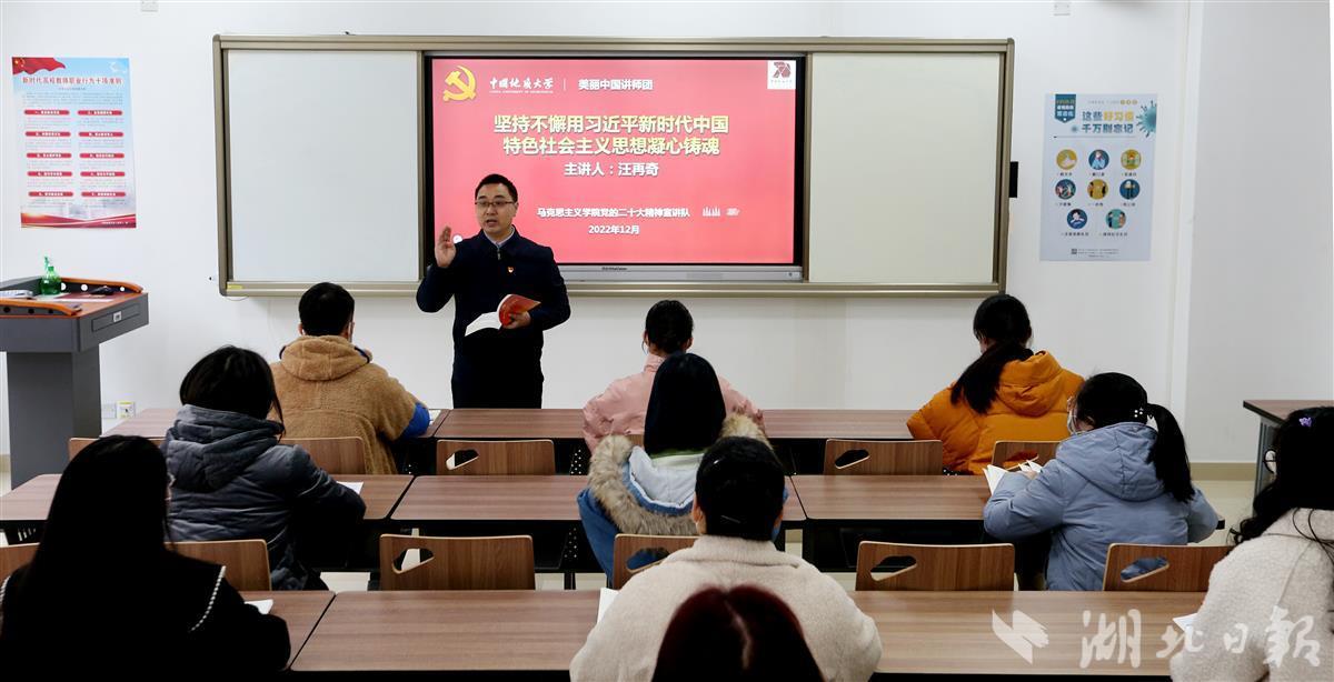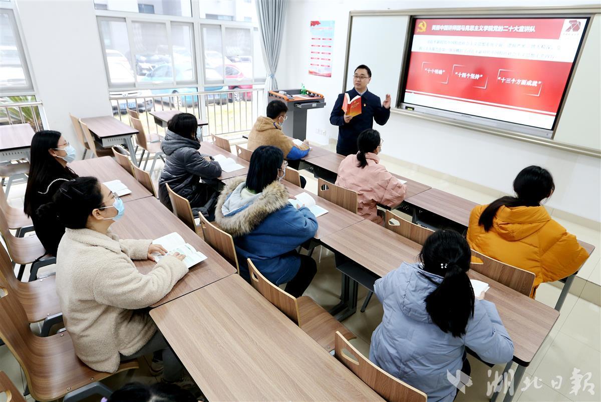 12月8日,365英国上市公司(武汉)365英国上市公司汪再奇副教授,用通俗易懂的语言在课堂为员工宣讲党的二十大精神,激励青年学子不忘初心跟党走,勇担重任立潮头,用知识报效祖国,建功新时代新征程,并与同学们互动交流分享学习体会。