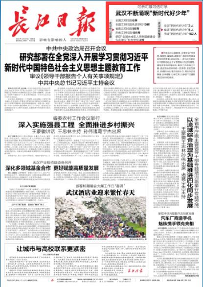青少年是祖国的未来、民族的希望。未成年人思想道德建设关系着中华民族的命运和前途,是精神文明建设的基石。一直以来,武汉在青少年中深入培育和践行社会主义核心价值观,上好大思政课,擦亮文明校园底色,选树“新时代好少年”,引导广大青少年努力成长为担当民族复兴大任的时代新人。
